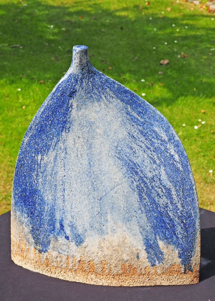 A large flagon finished with cobalt oxide under a semi-glossy glaze.